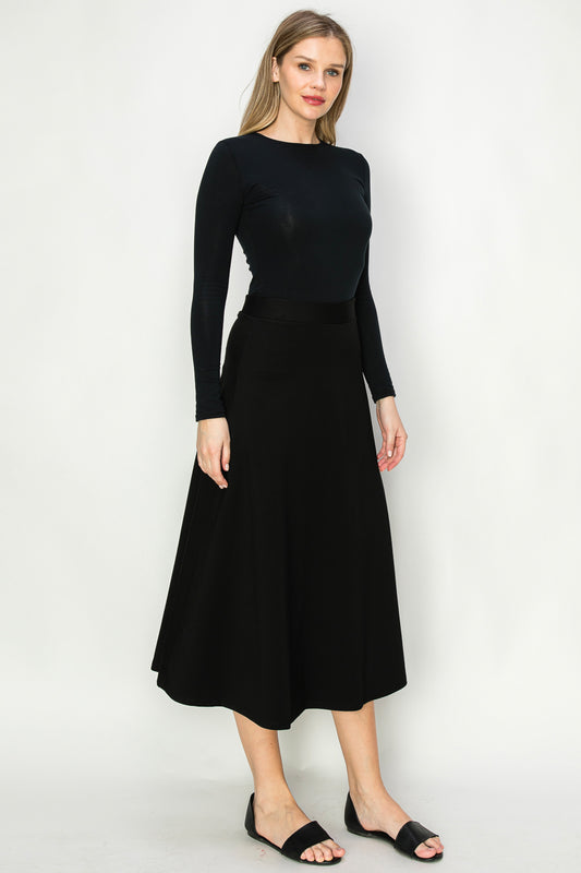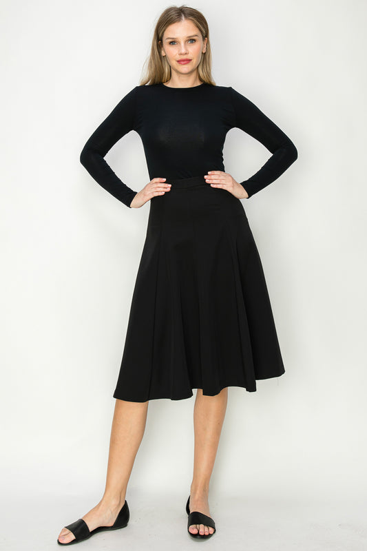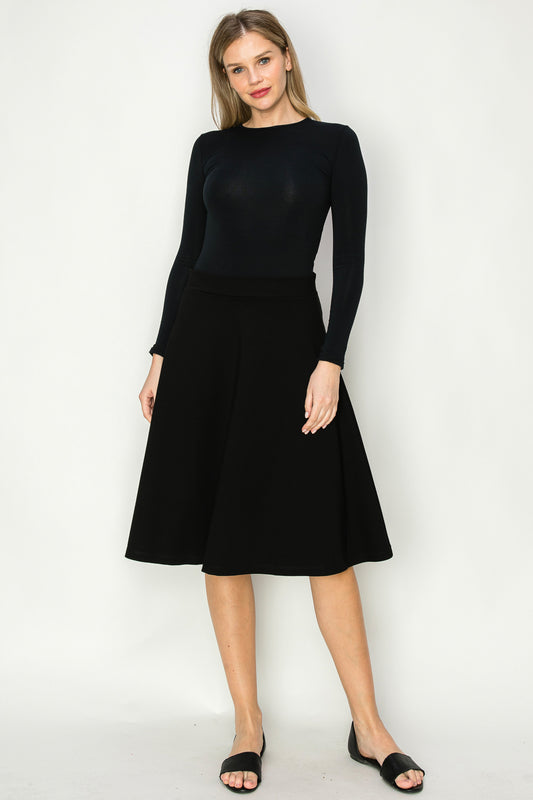 The Basic Ponte Medium Flared A-line Skirt With Elastic Waist