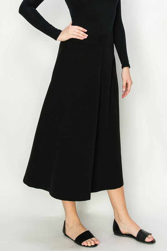 Emma Single Center Pleat Flowing A-line Midi Skirt