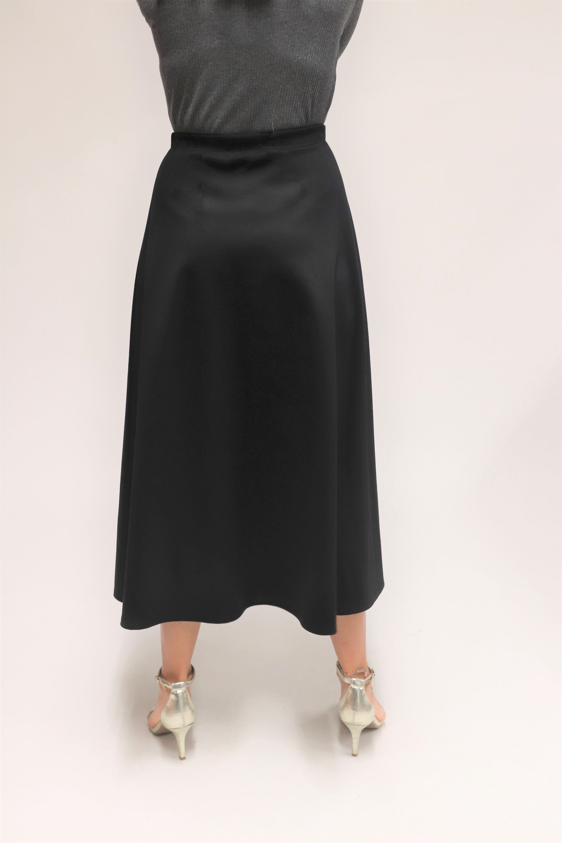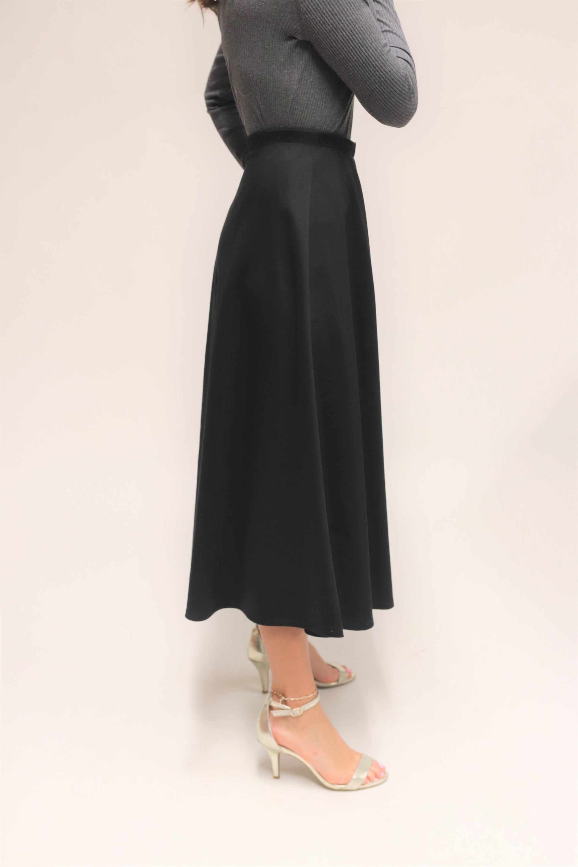 Made of Stretchy Ponte fabric Penny is sure to be super comfortable. Button front is not functional just for styling adds a trendy pop to a classic skirt body. 33" long the skirt falls to the mid calf area. there is an elastic for the skirt to sit securely. This skirt is perfect for every and any day.
